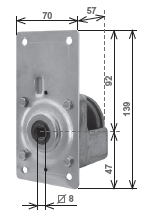 Puleggia rinforzata per argani a fune, rullo ottagonale 70mm.